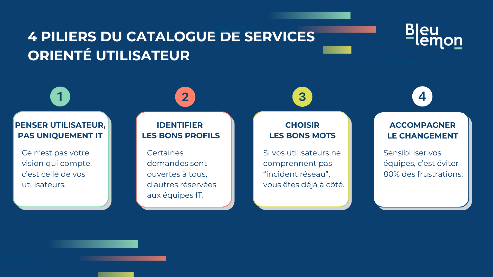 à transformer un catalogue de services IT en catalogue de services IT à destination des utilisateurs finaux,
