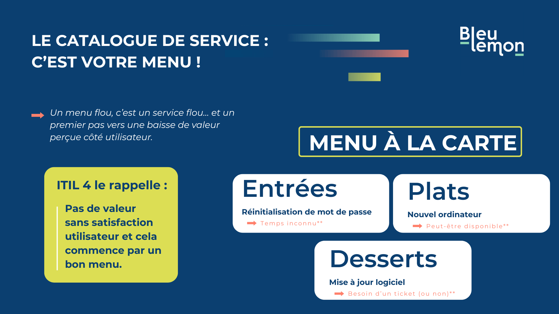 Si on fait une analogie, le catalogue de service est le pendant du menu dans un restaurant.